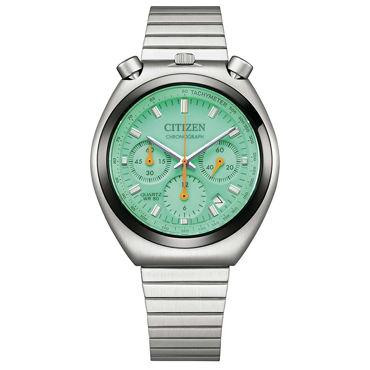 De naam Tsuno betekent “hoorn” in het Japans. Een verwijzing naar de opvallende plaatsing van de chronograafknoppen boven op de kast. Dit bullhead ontwerp werd in de jaren 70 populair onder liefhebbers van autosport en sportieve chronografen.